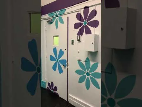 7’ x 13’ simplified floral design with creative wall painting serving autistic students aged 13 - 21 meant to brighten a drab, windowless room