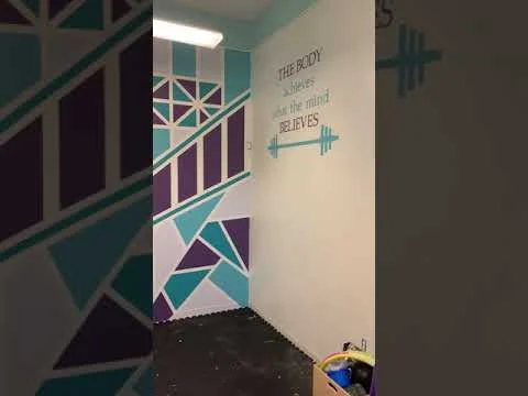 13’ x 14’ accent wall & 6’ x 5’ motivational murals for PT room serving autistic students aged 13 - 21 meant to inspire movement